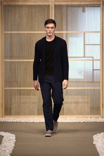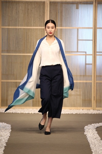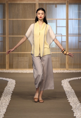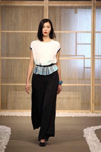 「上下」艺术总监蒋琼耳身着“漆韵系列服饰亮相,携春夏作品一同谢幕